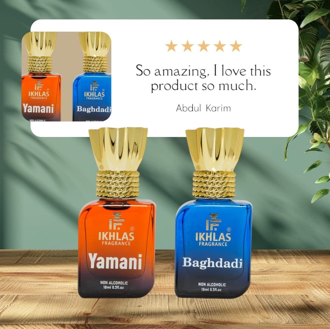 Introducing our Combo Pack of 2 pcs Ikhlas Fragrance, each bottle containing 10 ml of pure, original attar. Crafted to evoke a sense of calm and serenity, Ikhlas Fragrance blends subtle, earthy notes with a touch of floral essence, perfect for both men and women. This premium quality, alcohol-free attar is long-lasting, making it ideal for daily wear or special occasions. Each bottle is designed for easy application, ensuring you stay refreshed and fragrant throughout the day. Embrace the essence of Ikhlas and let its purity uplift your senses.