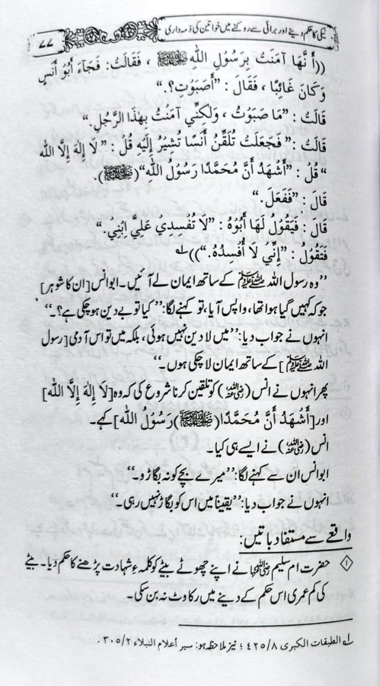 یہ کتاب “خواتین کی ذمہ داری” خواتین کے فرائض، کردار اور اسلامی نقطۂ نظر سے ان پر عائد ذمہ داریوں کو واضح کرنے کے لیے تحریر کی گئی ہے۔ اس میں ایک مسلمان عورت کی گھریلو، معاشرتی اور دینی زندگی کے مختلف پہلوؤں کو نہایت سلیس اور مؤثر انداز میں بیان کیا گیا ہے۔ کتاب میں پردے، اخلاق، اولاد کی تربیت، شوہر کے حقوق، معاشرتی خدمت، اور دین کی دعوت میں خواتین کے کردار جیسے اہم موضوعات شامل ہیں۔ اس کا مقصد خواتین کو یہ شعور دینا ہے کہ وہ اپنے کردار کو اللہ کی خوشنودی اور معاشرتی فلاح کے مطابق کیسے بہتر بنا سکتی ہیں۔ یہ کتاب ہر اس خاتون کے لیے ایک رہنمائی ہے جو اپنی زندگی کو اسلام کی روشنی میں سنوارنا چاہتی ہے۔