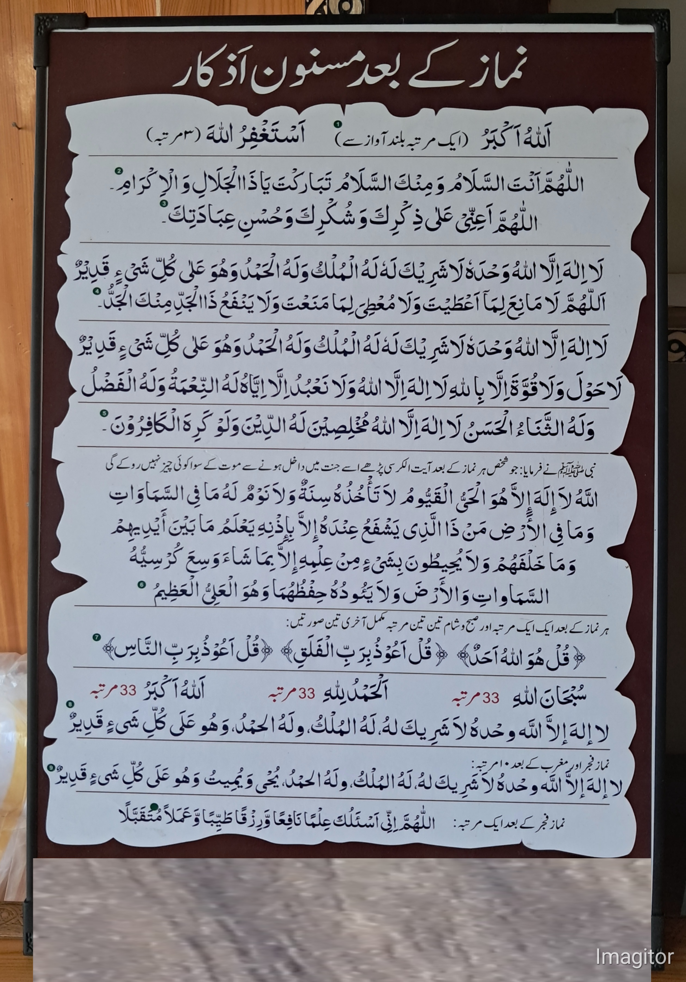 Farz Namazu Ke Baad Masnoon Azkar Frame 1ft by 2ft