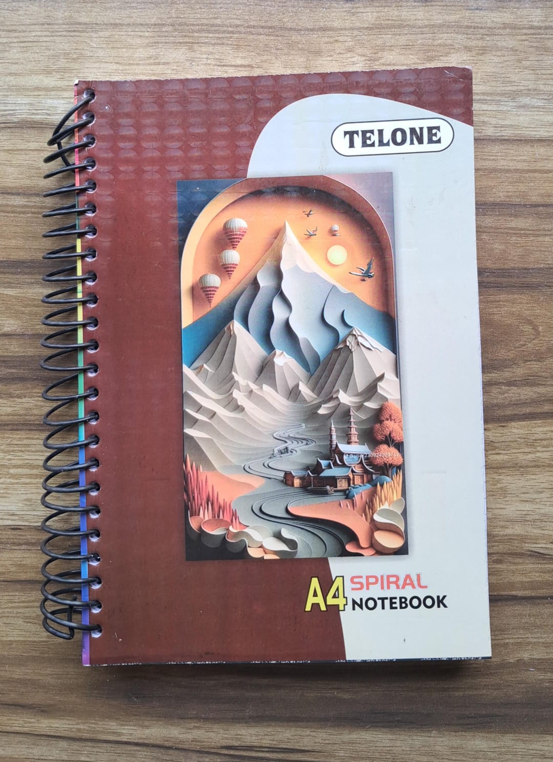 Spiral Notebook A4 (Telone) – A premium-quality A4-sized notebook with a sturdy spiral binding for easy page turning. Features smooth, high-quality paper ideal for writing, note-taking, and sketching. Perfect for students, professionals, and everyday use.